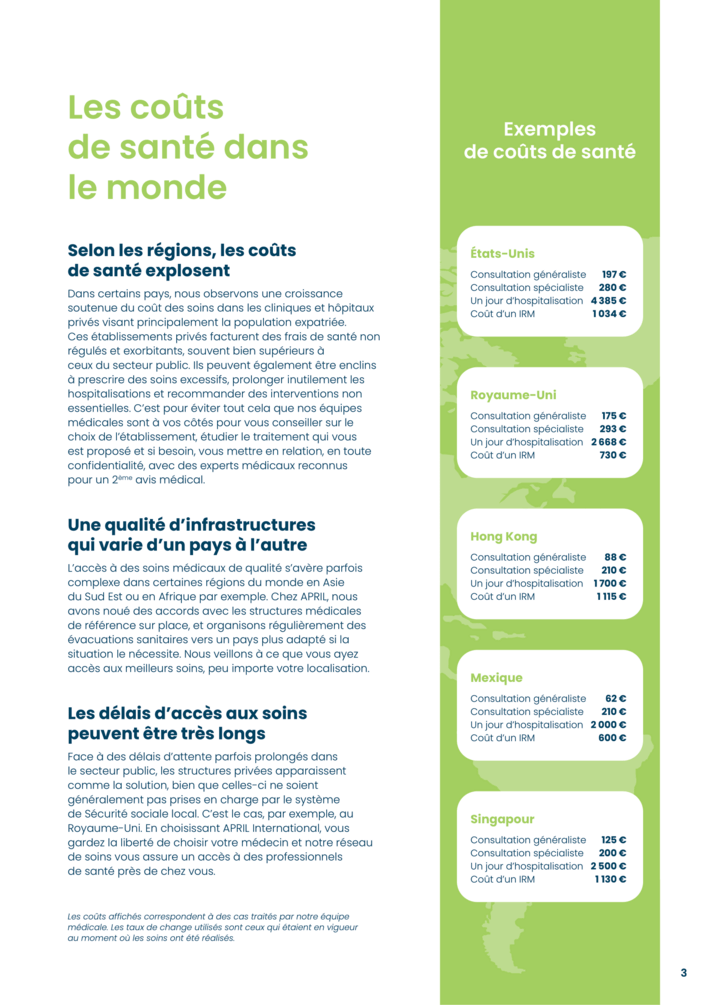 Les coûts de santé varient significativement d'un pays à l’autre et peuvent s’avérer
